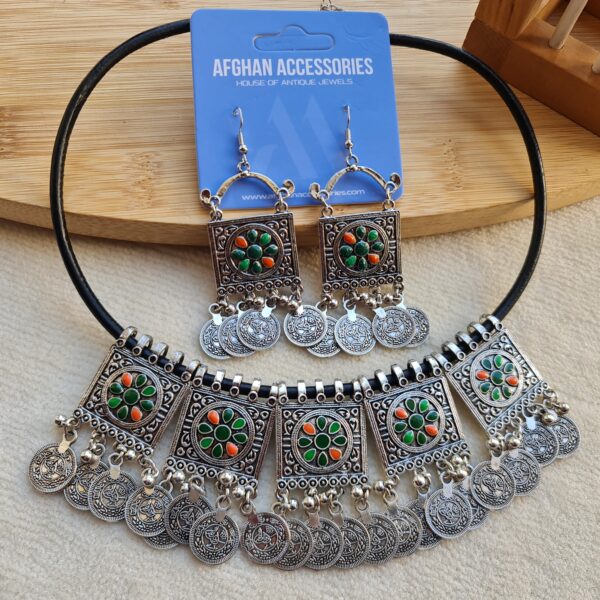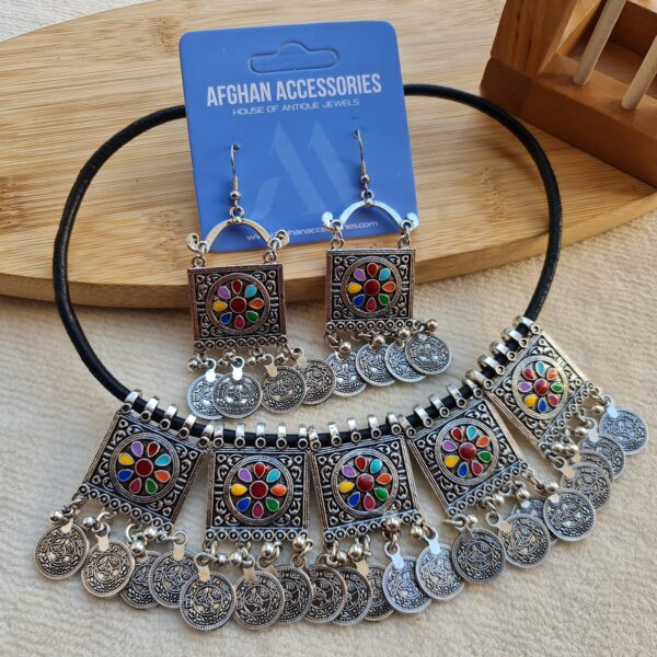 Antique oxidized rajihstani coin meena necklace set